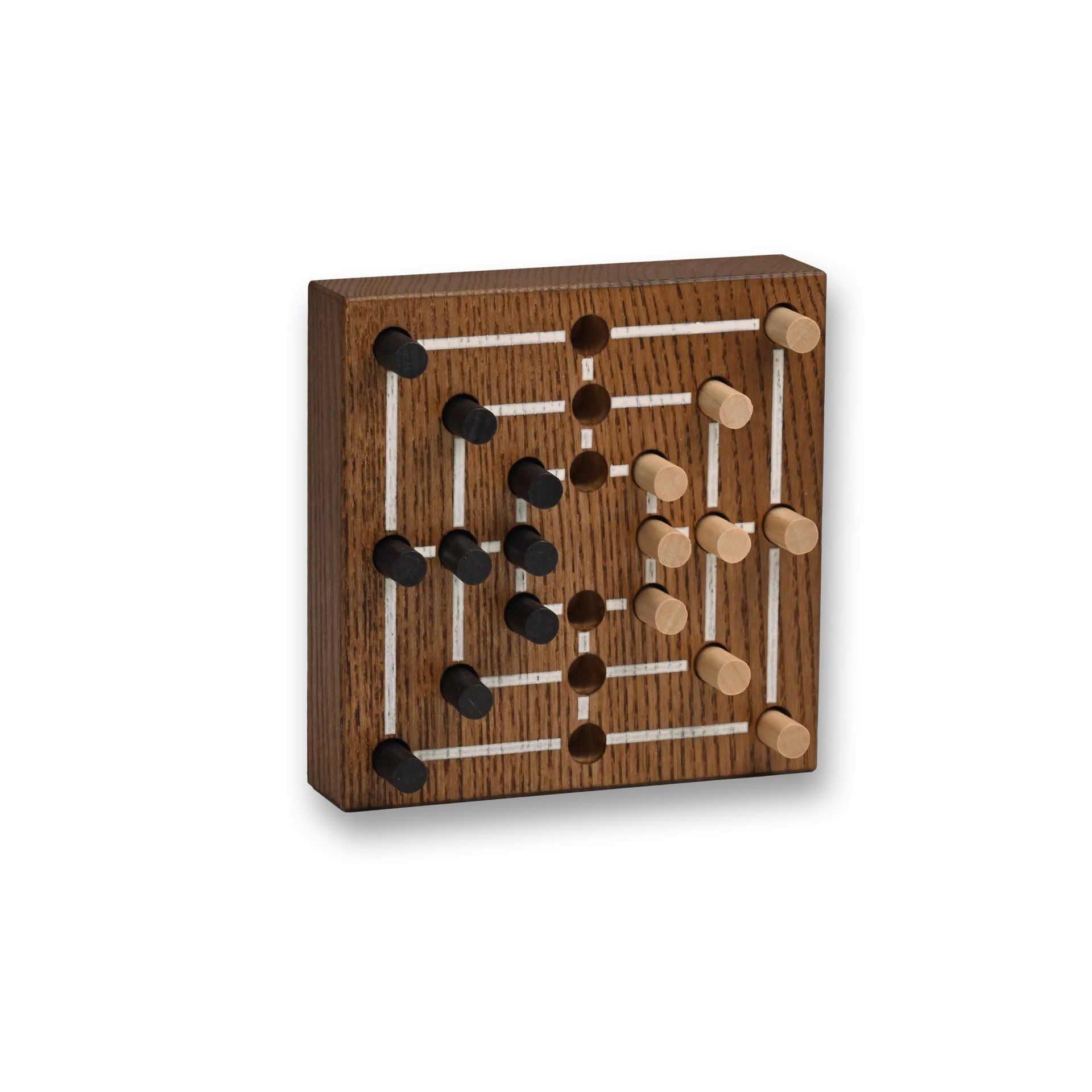 Das klassisches Mühlespiel im Taschenformat. Das hölzerne Brettspiel ist klein genug um Sie unterwegs oder auf Reisen zu unterhalten.
